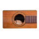 Detail Gitarren-Foto von Saiten und Klangloch auf einer abgenutzten akustischen Gitarre.