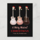 Merry musical Weihnachts Guitar maßgeschneiderte Feiertage Grüße Postcard. Bringen Sie musikalischen Beifall in die Festsaison mit diesen lustigen Country und Western rustikalen Kunstgitarren mit Weihnachtsmannmützen. Moderne Typografie in Rot und Grün einfach mit der Vorlage personalisieren. Fügen Sie Ihre eigenen Grüße hinzu und kreieren Sie eine einzigartige Weihnachtskarte für Musiker, Musiker, Musiklehrer und Rock & Roll Liebhaber. Original-Kunstwerk von Catherine Sweetman