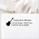 Ein weiße Adressetikett mit einem grafischen und schwarzen Bild einer Rockgitarre, personalisiert mit Ihren eigenen Namen und zusätzlichen Informationen