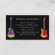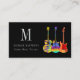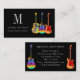Moderne, stilvolle Guitar Lehrer individuelle Visitenkarte. Diese lebendige Visitenkarte bietet psychedelische akustische, semi-akustische und elektrische Gitarren in einer beeindruckenden Farbpalette vor einem auffallenden schwarzen Hintergrund. Komplett mit einem personalisierten Monogramm, Ihrem Namen, Kontaktdaten, die alle in stilvoller Typografie dargestellt werden, ist diese Karte die perfekte coole und farbenfrohe Einführung für Gitarrentrainer, Gitarristen, berufliche Musiker, Entertainer und Musiklehrer. Original-Kunstwerk der Künstlerin Catherine Sweetman.
