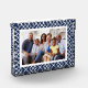 Mit unserem schicken freistehenden Acrylblock zeigen Sie ein beliebtes Foto in elegantem Stil. Das Design zeigt Ihr horizontales oder vertikales Foto, gerahmt durch ein Bambusgittermuster in klassischem Marineblau und Weiß.