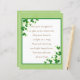 Schönes Scrapbook mit irischem Segen, Kleeblatt-Verzierung und goldgrün strukturiertem Hintergrund : Mögen Ihre Gedanken so froh sein wie die Kleeblätter. Möge dein Herz so hell sein wie ein Lied. Möge Ihnen jeden Tag fröhliche Stunden bringen, das bleibe mit Ihnen das ganze Jahr lang.