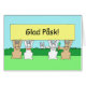 Eine Reihe von Cartoon spielen auf einem Feld und essen Karotten. Die Kaninchen halten ein Zitronenschild auf, auf dem "Glad Påsk" steht, was auf Schwedisch "Happy Oaster" bedeutet.