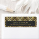 Dieses elegante Rücksendelabel ist Teil einer hochmodernen Deko Hochzeitssuite mit luxuriösen Rahmen und aufwändigen, glänzenden Golddetails. Die klassischen Designs strahlen einen glamourösen Vintagen Charme aus, mit einer schwarzen Farbpalette, leuchtendem Gold und warmen Grautönen. Die verzierten Details verleihen diesem zeitlosen Design eine Touch von Eleganz. Fügen Sie Ihre Namen und Rücksendeadresse mit der bereitgestellten Vorlage hinzu. Suchen Sie nach ID1033, um weitere Hochzeitsprodukte im Design-Set zu sehen.