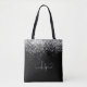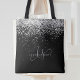 Glam Black Silver Glitzer Elegante Monogram Tote Bag. Dieses schicke Tote-Design mit elegantem silberfarbenem Glitzer auf schwarzem Hintergrund ist einfach zu personalisieren. Das Design enthält Ihr handgeschriebenes Skriptmonogramm mit hübschen Wirbel und Ihrem Namen.