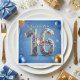 Glam Blue Gold Glitter Balloon Sweet 16 Birthday Serviette