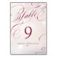 Écriture manuscrite romantique script de calligraphie en faux parties scintillant bordeaux sur subtil arrière - plan de bokeh brillant, élégant et sophistiqué, grande carte de numéro de table mariage pour mariage de luxe, mariage vintage glam, et mariage traditionnel au printemps, automne et hiver. Voir toutes les pièces correspondantes dans la collection.