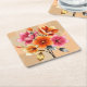 Dies ist ein hübscher Glam Cubism Art Blume Untersetzer. Das Bild der Blume wurde mit einer generativen Kunst geschaffen. Die Kunst ist ein digitales Gemälde. Die zeitgenössische Kunst mit hübschen Blume in Rosa, Orange, Imitate Silberfolie, Imitaten Goldfolie und Bräunungsfarben. Die Kunst ist eine harmonische Komposition mit ausgewogenen Formen und abstrakten Mustern. Der Untersetzer ist ein Untersetzer aus viereckigem Karton. Im Set sind 6 Untersetzer.