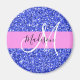 Glam Dark Blue Pink Glitzer Glitzern Name Monogram Magnet