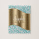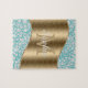Personalisieren Sie große goldene Monogramm und Name in weißen Skripten auf Goldwelle mit weißen Diamanten auf aquamarin.