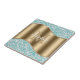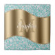 Personalisieren Sie große goldene Monogramm und Name in weißen Skripten auf Goldwelle mit weißen Diamanten auf aquamarin.