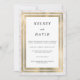 Der geometrische Rahmen des Glitzer ist aus weißem und goldfarbenem Marmor und eine elegante Hochzeit. Dieses minimalistische Design besticht durch einen hübschen goldenen Glitzer-Marmor-Rahmen. Passen Sie dieses Design mit Ihrer Nachricht und personalisierten Informationen an. Alle Designs sind gedruckt.