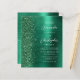 Die links Kulisse dieser eleganten, modernen Hochzeitseinladung besticht durch eine smaragdgrüne Imitat-Glitzer-Grenze. Der anpassbare Text kombiniert weiße Handschrift, Copperplate und kursiv Schriftart auf einem smaragdgrünen Imitat gebürsteten Metall Hintergrund. Die Rückseite bietet Platz für Hochzeitsdetails auf einem grün gebürstetem Metall-Hintergrund, zusammen mit einem QR-Code können Gäste scannen, um Ihre Website und UAWG, die die Kosten für den Druck und Versand separater RSVP-Karten rette.