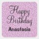 Glam Happy Birthday Lila Glitzer Sparkle Name Quadratischer Aufkleber