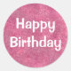 Herzlichen Glückwunsch zum Geburtstag Aufkleber mit glam rosa lila Rose Gold Glitzer Glitzern und fett weiß schreiben.