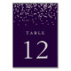 Glam Imitats Silver Confetti auf Deep Lila Tischnummer