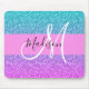 Glam Lila Aqua Glitzer Sparkle Gradient Monogram Mousepad
