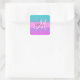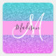 Lila, lila, aqua und türkisfarbene Meerjungfrau-Glitzern-Gradienten Monogramm-Name und Initial-Quadrat-Aufkleber. Individuelle Name und Monogramm sind in einem handgeschriebenen, eleganten Skript mit rosa Hintergrund geschrieben. Ein perfektes Geburtstag- oder Weihnachtsgeschenk!