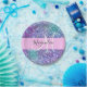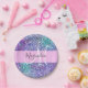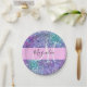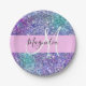 Glam lila, blaue und grüne Glitzer Glitzern Monogramm Name und erste Papier Teller. Individuelle Name und Monogramm sind in einem handgeschriebenen, eleganten Skript mit hellrosa Hintergrund geschrieben. Sie können die Textfarbe, den Schriftart und die Schriftgröße mit der Option Anpassen ändern.