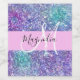 Glam lila, blau und grün Glitzer Glitzern Monogramm Name und erste Weinetikett. Individuelle Name und Monogramm sind in einem handgeschriebenen, eleganten Skript mit hellrosa Hintergrund geschrieben. Sie können die Textfarbe, den Schriftart und die Schriftgröße mit der Option Anpassen ändern.