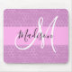 Glam und gürtellila metallische Honigwabenmuster Monogramm Name und erste Maus-Pad. Individuelle Name und Monogramm sind in einem eleganten, mit schwarzweißem Buchstaben versehenen Schrift mit rosa Hintergrund geschrieben. Sie können die Textfarbe, den Schriftart und die Schriftgröße mit der Option Anpassen ändern.