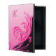 Elegantes iPad 2/3/4 Folio Gehäuse in hellgradienten rosa, mit einer Grafik von einem heißen rosa blühte, unten, und schwarz, in den Ecken. Personalisieren Sie das rosa Monogramm mit einem Buchstaben. Eine schöne Art, Ihr elektronisches Gerät zu schützen und auch stilvoll auszusehen.