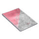 Glam carnet spiral personnalisé, avec des graphiques d'une feuille rose regardent au-dessus de la moitié de la couverture et une brillance argent fait sur l'autre moitié. Des graphiques de parties scintillant argentée descendent au milieu du carnet. Personnalisez le texte à utiliser à la maison, à l'école ou au bureau.