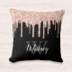 Glam Pink Glitzer Tropfen Schwarzer Monogramm Lett Kissen