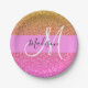 Glam Pink & Gold Glitzer Sparkle Gradient Monogram Pappteller