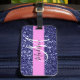 Glam rosa und marineblau Glitzer Glitzern weiße Monogramm Name und erste Gepäckmarke. Individuelle Name und Monogramm sind in einem handgeschriebenen, eleganten Skript mit rosa Hintergrund geschrieben. Sie können die Textfarbe, den Schriftart und die Schriftgröße mit der Option Anpassen ändern. Ein perfektes Geburtstag- oder Weihnachtsgeschenk!