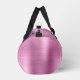 Diese personalisierte Duffeltasche hat ein Monogramm und Vorname in modernem Schwarz-Weiß-Drehbuch auf einem Glam rosa Imitat gebürstet Metall Hintergrund.