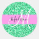 Glam Rosa und grüner Glitzer Glitzern Monogram Nam Runder Aufkleber