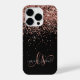 Glam Rose Gold Glitzer Elegantes Monogramm iPhone 14 Pro Hülle