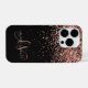 Glam Rose Gold Glitter Elegant Monogram iPhone Case. Easily personalize this trendy chic phone case design elegant rose gold sparkling glitter on a black background. The design feys your handwritten script monogram with pretty swirls and name.