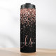 Glam Rose Gold Glitzer Elegant Monogram Thermal Tumbler. Dieses trendige, elegante, thermale Tumbler-Design mit elegantem, goldglänzenden Imitat-Glitzer in Rose auf schwarzem Hintergrund ist einfach zu personalisieren. Das Design enthält Ihr handgeschriebenes Skriptmonogramm mit hübschen Wirbel und Namen.