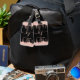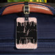 Sylish, Girly, Elegant, Light Rose Gold Glitzer Tropfen 2 Monogram Script benutzerdefinierten personalisierten Namen mit Monogramm Gepäckanhänger auf schwarz. Mit einem modernen Luxus-Imitat hellrosa Rose Gold Glitzer Tropfrahmen, einem großen doppelhandgeschriebenen Monogramm-Skript-Schriftart mit Swashes (große Initialen), und einem Serif-Typ Schriftart-Namen in hellrosa auf schwarzem Hintergrund. Einfach zu personalisieren.