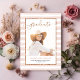 Annonces photo de graduation imprimées sur mesure abordables et invitations de fête avec des modèles simples pour la personnalisation. Ce design féminin chic présente une bordure en feuille d'or rose et un arrière - plan rayé rose vif. Personnalisez-le avec votre photo et ajoutez les détails de votre faire-part de remise de diplômes et de la fête à l'arrière. Utilisez les outils de conception pour modifier les polices de texte et les couleurs, ajouter plus de photos et créer un design unique d'un genre pour votre grad!