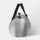 Diese personalisierte Duffeltasche ist mit einem Monogramm und einem Vornamen in modernem Schwarz-Weiß-Drehbuch auf einem glamourösen silbernen Imitat gebürstet Metall Hintergrund.
