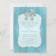 Glamouröse Babydusche-Einladung in einem robinfarbenen Folie mit einem Hintergrund, mit Grafiken von silberfarbenen Konfetti und einem verzierten silbernen Glitzer, der Baby-Buggy. Ein gerahmter Textbereich in Silber bietet eine individuelle Note für Ihre Babydusche.