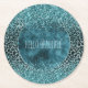 Glam Türkis Aquamarin Blue Leopard Print Glitzer Runder Pappuntersetzer