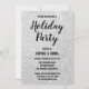 Feierliche und glänzende Weihnachtsfeier Einladung mit einem funkelnd silbernen Glitzer Glitzern Hintergrund und fett, schwarz geschrieben. Dies ist die perfekte Urlaubs-/Weihnachts-/Wintereinladung!