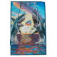 Machen Sie Ihr Geschenk unvergesslich mit unserem Glamour Chomp Hai-Geschenksack, mit Kunstwerken von Matt Chase Morelan! Dieses kühne Design zeigt zwei Haie, die aus dem Ozean springen, Kiefer offen, mit dem Ziel, große glänzende Edelsteine vor einem lebendigen Sonnenuntergang zu errichten. Diese einzigartige Geschenktasche eignet sich perfekt für Geburtstage, Beach Party, Hai-Liebhaber und Ozeanfreunde. Sie verleiht jedem Fest einen ganz besonderen Flair. Wrap deine Geschenke mit erbitterter Meeresenergie und unvergesslichen Flair!