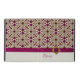 Elegantes iPad 2/3/4 Gehäuse, mit Grafik eines orchid-rosa Edelsteins und goldenem Tonmuster. Ein solides Elfenbein ganz unten, mit Grafiken eines orchid satin aussehenden Band mit einem rosa und goldenen Juwel. Personalisieren Sie den rosa Text für sich selbst oder als Glam Geschenk Idee.
