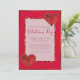 Diese individuelle Party Einladung ist ein glamouröses Valentinstag-Thema. Der Hintergrund ist kirschrot, mit einem roten Rahmen an der Einladung und einem roten Rahmen an der Textseite. Hübsche rote Glitzer-Herzen werden oben rechts und unten in links Ecken platziert.