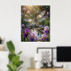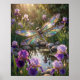 Eine zarte Glasmalerei-Libelle schwebt über blühenden Schwertlilien, ihre länglichen Flügel leuchten in Saphirblau, Smaragdgrün, Bernstein-Gold, Lilatönen und irisierenden Juwelentönen. Elegante Rahmenlinien, leuchtende Transparenz und brillante Reflexionen schaffen ein handgefertigtes dekoratives Meisterwerk. Warmer Nachmittags-Sonnenlicht scheint über Teiche, Schilf, polierte Steine, Blütenblätter und sanfte botanische Tiefe und verleiht der Szene eine ruhige, verfeinerte Atmosphäre. Ideal für feminine Innenräume, Frühlingsdekoration, Gartenliebhaber, Kinderzimmer und Geschenkkäufer, die nach farbenfroher Premium-Wandkunst suchen.