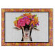 Die grafische Kunst einer Ziege, die Blume auf ihrem Kopf trägt. Das Randmuster ist eine Computermanipulation der Blume Details.