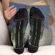 Blaue, lila und weiße Blume mit Reben und Blätter