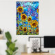 Dieses atemberaubende Buntglasdesign besticht durch ein Sonnenblumenfeld an einem blauen Himmel.