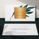 Ausgeklügelte, schlichte und moderne glamouröse feminine, berufliche Luxus-Visitenkarte mit handgemalten Blätter Aquarellblau tief navy Zweig und mit einem Imitat Rose goldfarben Kupfermetall geometrische Beschriftung. — Perfekt für Mode-Stylist | Zuhause Innendekorator | Designer | Architekt | Künstler | Florist | Veranstaltungsplaner | Maler | Sonstige Kreative | Eigentümer von Mode-Boutiquen | Chefin | Garten Garten Garten Garten Designer. — Personalisieren Sie es mit Ihrem Namen und Details innerhalb des Quadrats auf der Vorderseite und auf der Rückseite! — Wenn Sie Hilfe benötigen, kontaktieren Sie mich bitte.
