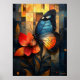 Glass Butterfly auf einer lebendigen Blume Poster